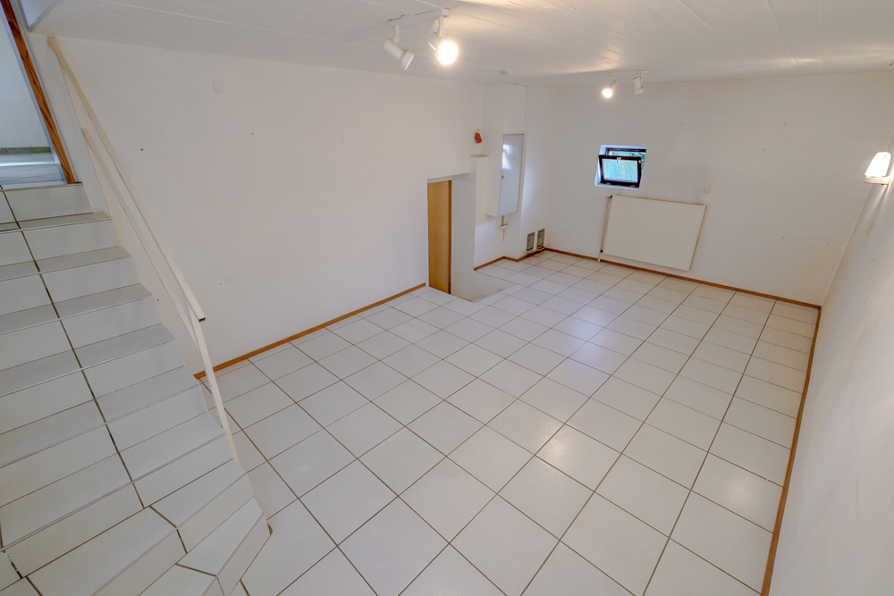 Für diesen Fall würde der Eigentümer den erforderlichen Durchbruch, den Einbau einer Außentür sowie die Herstellung eines Podests mit Treppe (5 Stufen) übernehmen. Der Durchbruch ist zwischen dem Gäste-WC (rechts) und dem Kellerbereich (links) vorgesehen.Überzeugen Sie sich selbst: