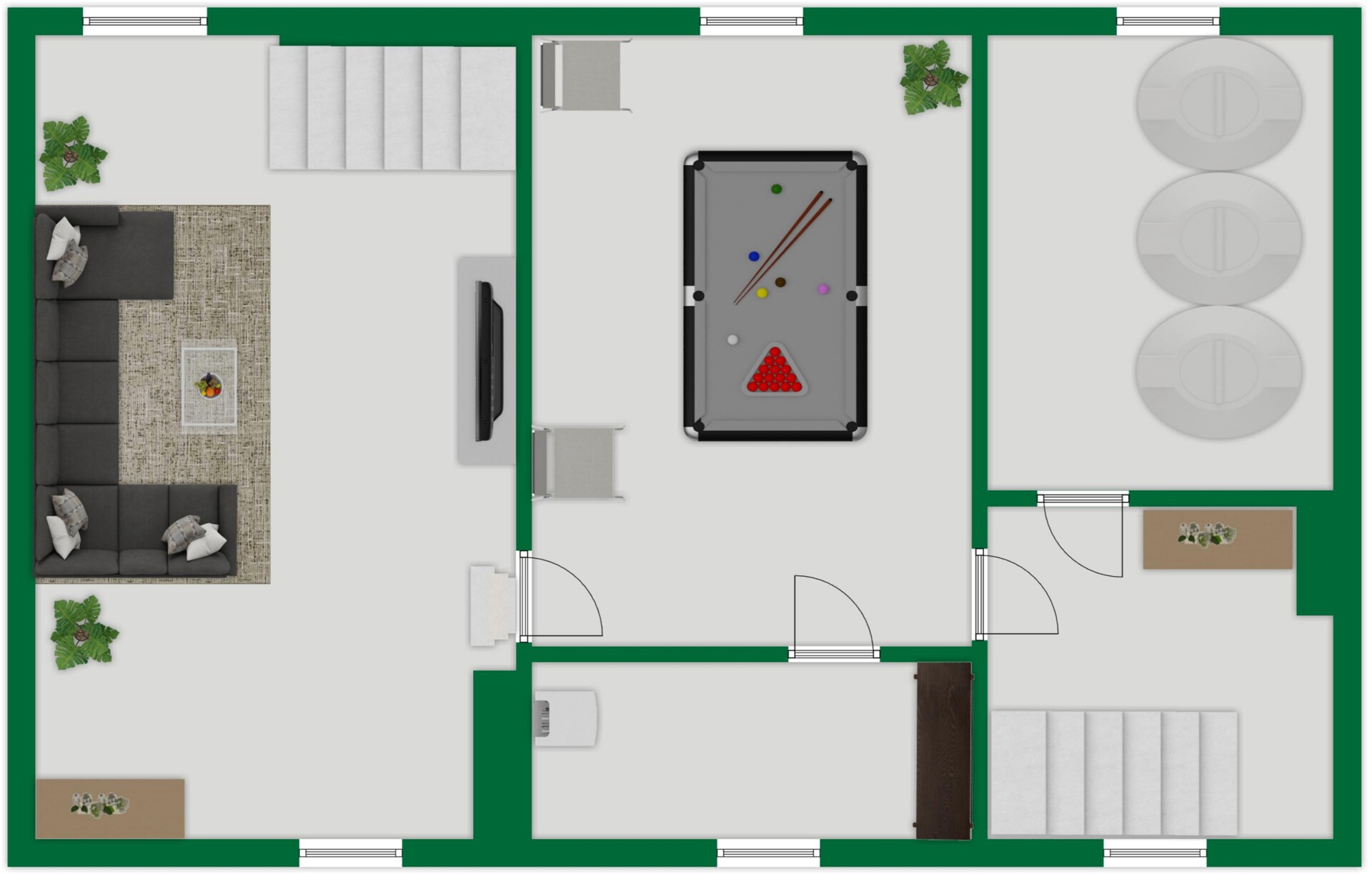 • Kellergeschoss: Über zwei Treppen vom Erdgeschoss erreichbar. Hier befinden sich ein großer, gefliester und beheizter Hobbyraum, ein großzügiger Vorratsraum, der Heizungskeller (Ölheizung, Baujahr 1996) sowie der Öltankraum. -