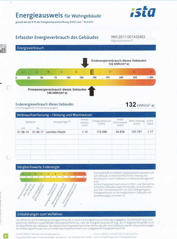 - Energieverbrauchskennwert: 132,00 kWh/(m²*a)