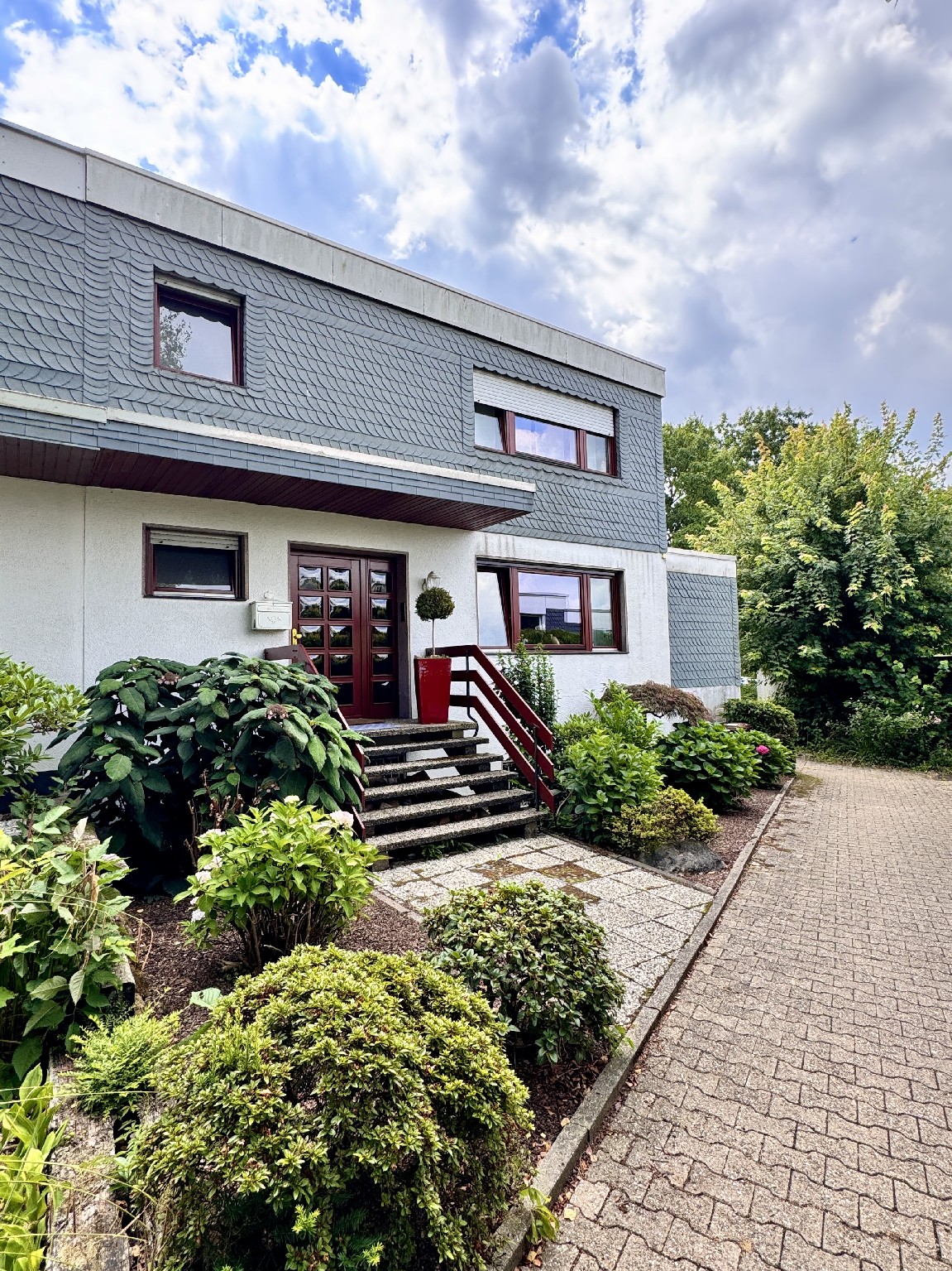 Das Haus befindet sich in einem sehr gepflegten Zustand und bietet ein gut durchdachtes Wohnkonzept mit viel Platz und Komfort. Dank seiner Lage verbindet es entspanntes Wohnen mit guter Infrastruktur zu den Einkaufsmöglichkeiten, Schulen und Verkehrsanbindungen. -