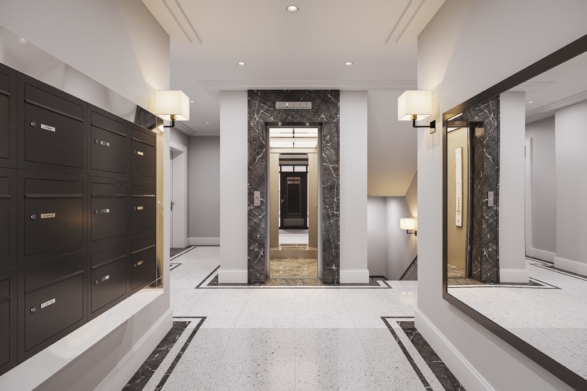Von der Tiefgarage aus erreichen Sie Ihr neues Zuhause bequem mit dem Lift. Die Wohnung verfügt über drei Zimmer und bietet einen Grundriss für einen modernen Lifestyle für die kleine Familie oder ein Pärchen. Im Herzen der Wohnung befindet sich das großzügige Wohn-Esszimmer mit offener Küche und einem ideal ausgerichteten Westbalkon. Das Elternschlafzimmer verfügt über einen begehbaren `Kleiderschrank´ und ein angenehm großes Badezimmer ensuite mit Wanne und Dusche. Das zweite Schlafzimmer ist ideal für den Nachwuchs, kann aber selbstverständlich auch als Büro oder Gästezimmer genutzt werden. Neben diesem Raum befindet sich das Gästebad mit Dusche sowie ein über die Diele zugänglicher Hauswirtschaftsraum.