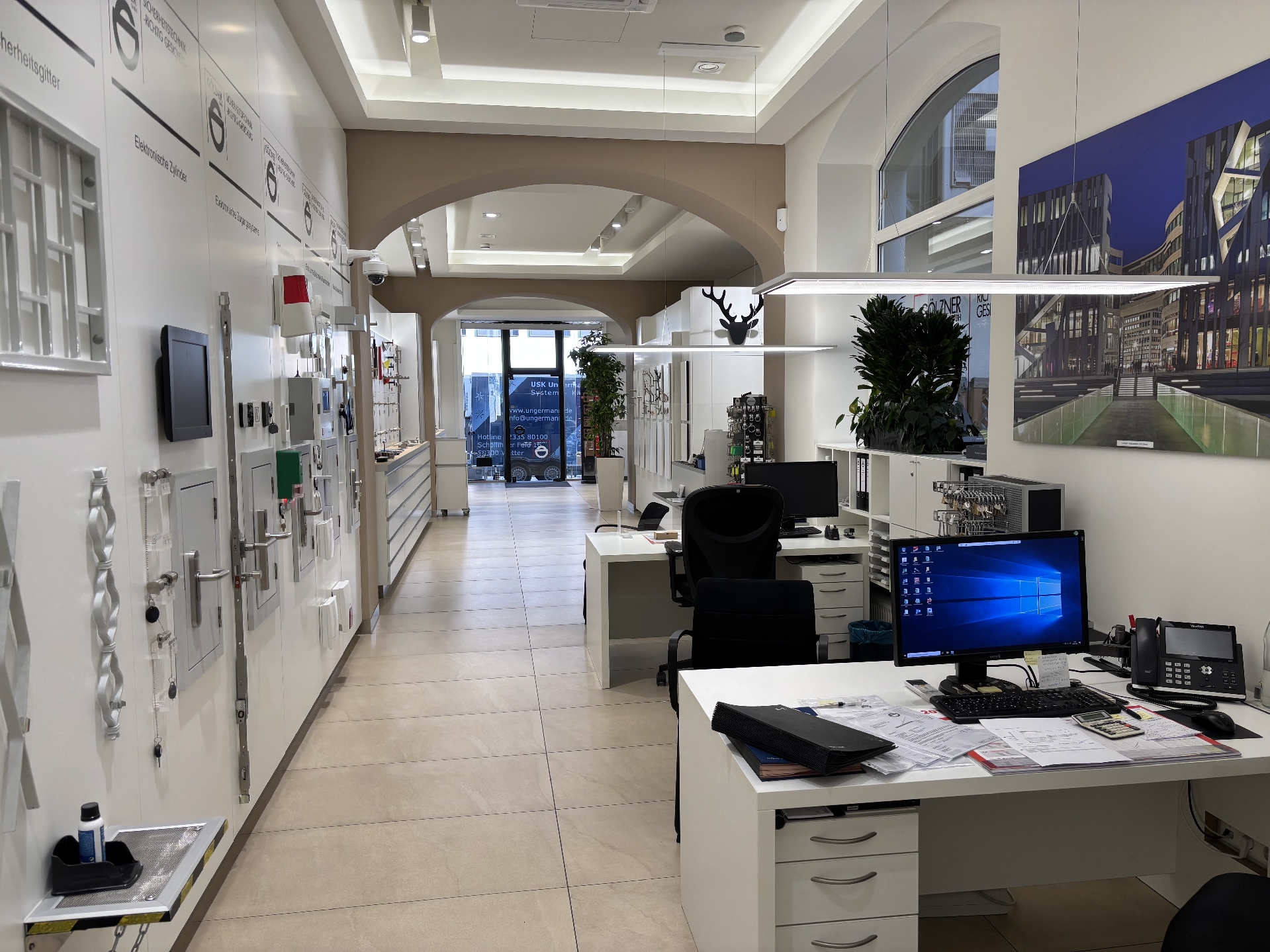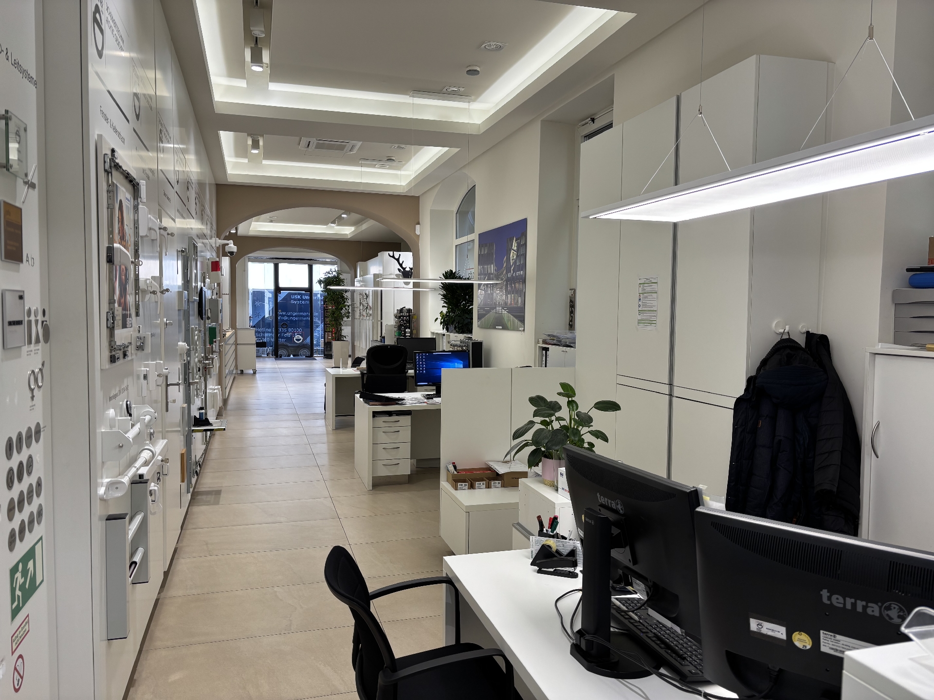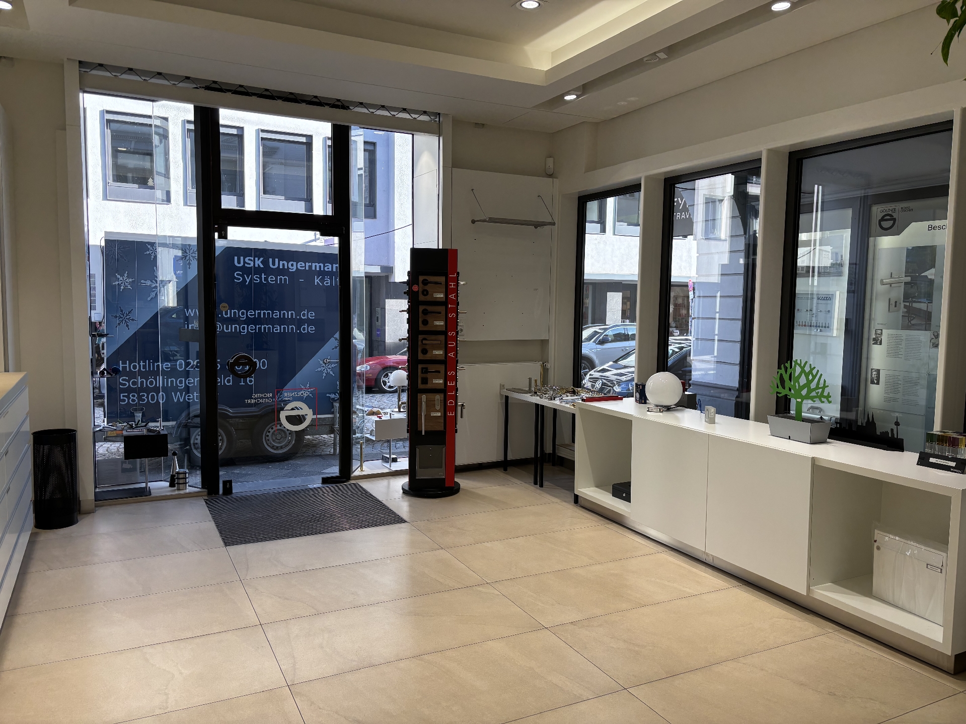 Das Ladenlokal befindet sich in einem innen wie außen sehr gepflegten Wohn- und Geschäftshaus. Mit hohen Decken und Schaufenstern zur Straße ist das Ladenlokal ein Blickfang. Es verfügt über einen großzügigen, lang gestreckten Verkaufsraum (ca. 88 m²) sowie einen Büroraum und eine WC-Einheit, beides im hinteren Bereich des Ladenlokals.
