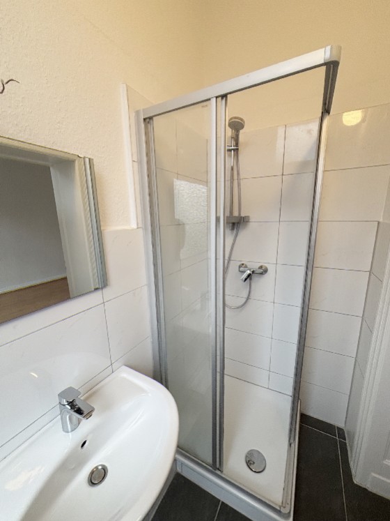 - Badausstattung: Dusche, Fenster