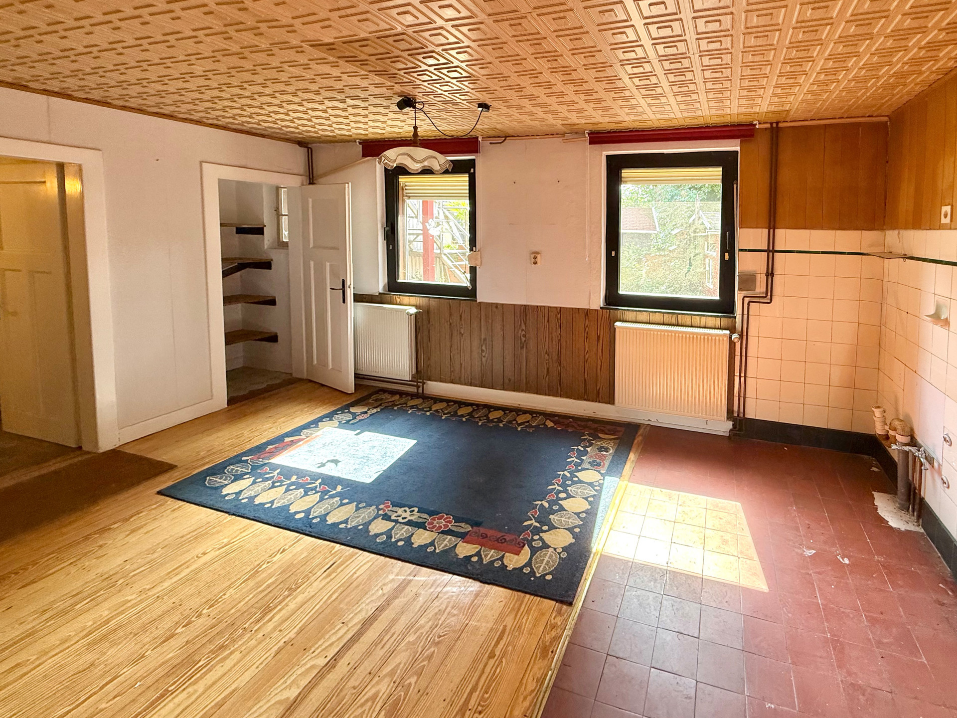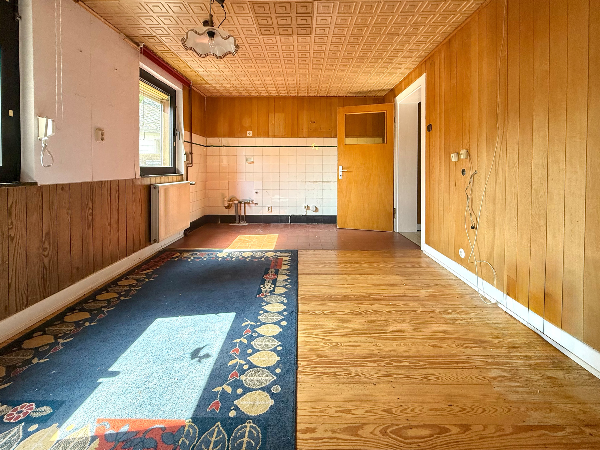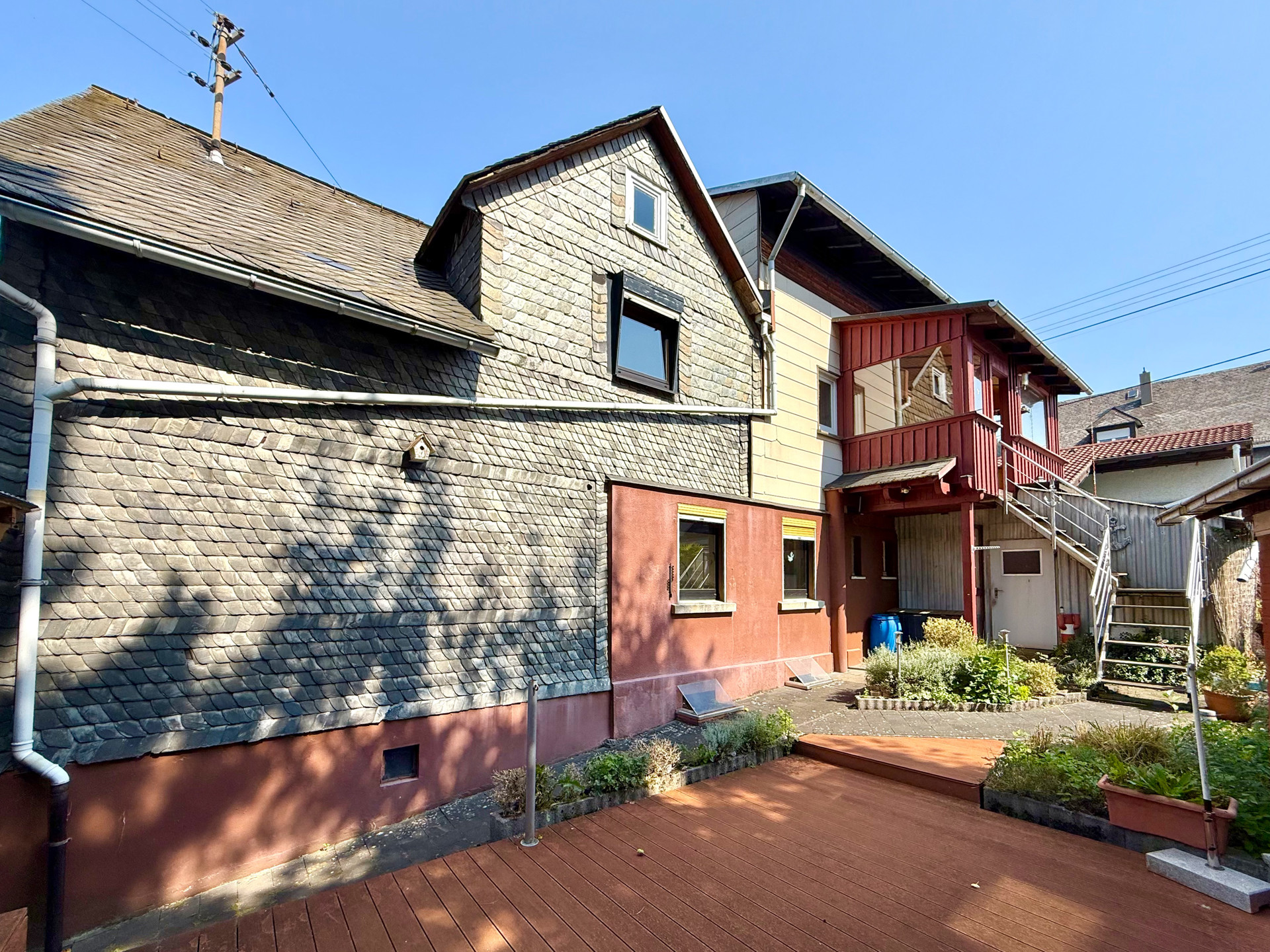 • Das ehem. Bauernhaus wurde um ca. 1920 auf einem rd. 425 m² großen Grundstück errichtet und später um weiteren Wohnraum ergänzt. Heute bietet es zwei potenzielle Wohneinheiten, die aktuell miteinander verbunden sind, aber mit entsprechenden Umbaumaßnahmen separat nutzbar wären – Ideal für einen Mehgenerationenhaushalt oder zum Wohnen und/oder Vermieten. Der rechte, ursprüngliche Hausteil befindet sich in renovierungsbedürftigem Zustand und stellt auf ca. 88 m² Wohnfläche einen Wohn-/Essbereich, eine Küche, ein Bad sowie ein Schlafzimmer zur Verfügung. Der linke Teil besitzt eine Fläche von rund 104 m², ist gepflegt und sofort beziehbar. Diese Einheit besitzt 2 Schlafzimmer, ein Duschbad, eine Ankleide, einen geräumigen Wohn-/Essbereich mit angrenzendem Wintergarten, eine Küche samt EBK sowie zwei Abstellräume. Das pflegeleichte Grundstück bietet eine große Terrasse im hinteren Bereich sowie ein Gartenhaus. Zwei separate Stromzähler sind vorhanden. Der linke Teil ist über das gemeinsame Treppenhaus im Obergeschoss oder über den Wintergarten zugänglich. Das Haus ist teilunterkellert – im Ursprungsteil befindet sich ein Bruchsteinkeller mit drei Nutzräumen. Als Parkmöglichkeit stehen zwei Garagen und 1-2 Stellplätze vor dem Objekt bereit.