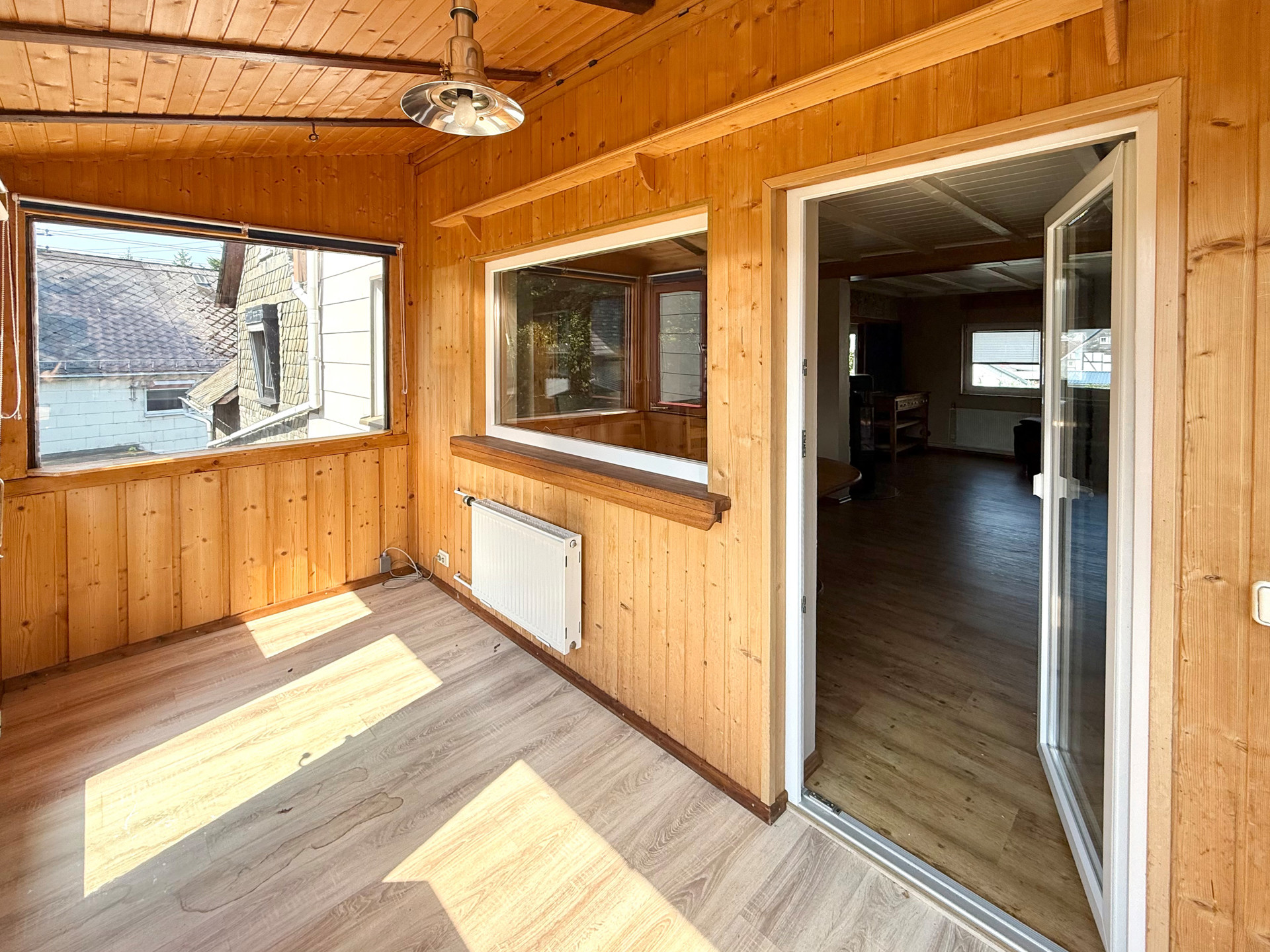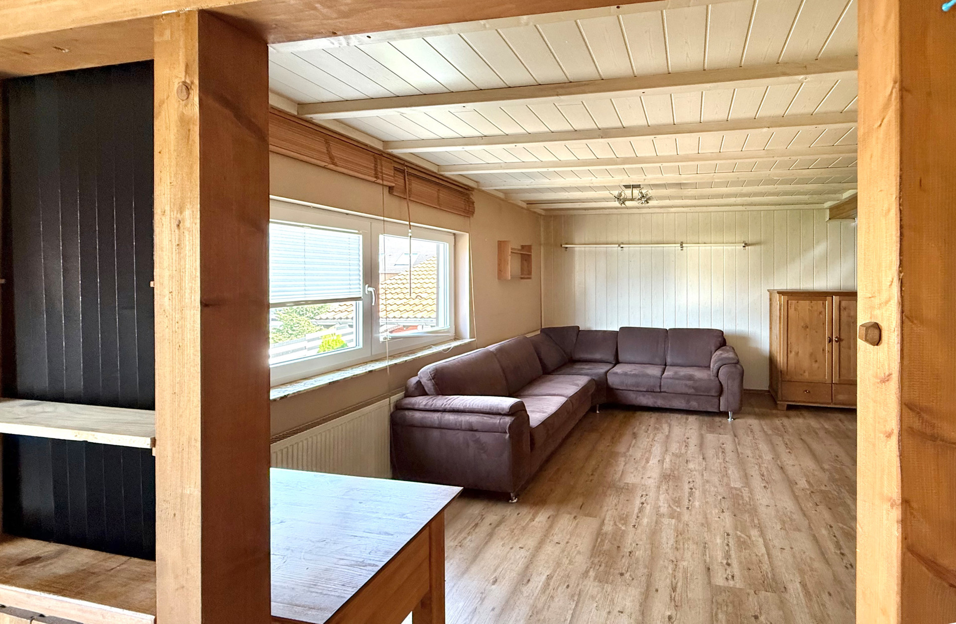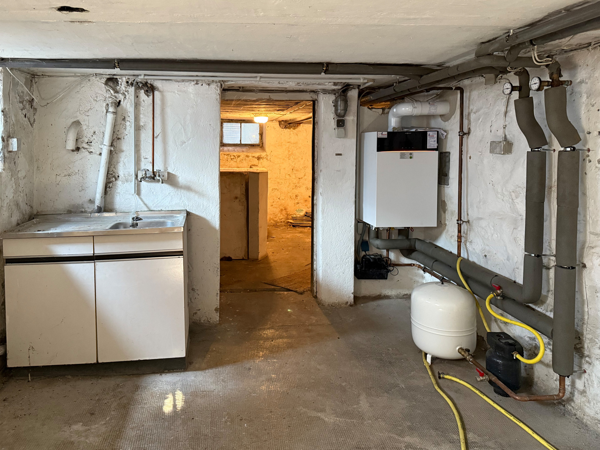 • Das ehem. Bauernhaus wurde um ca. 1920 auf einem rd. 425 m² großen Grundstück errichtet und später um weiteren Wohnraum ergänzt. Heute bietet es zwei potenzielle Wohneinheiten, die aktuell miteinander verbunden sind, aber mit entsprechenden Umbaumaßnahmen separat nutzbar wären – Ideal für einen Mehgenerationenhaushalt oder zum Wohnen und/oder Vermieten. Der rechte, ursprüngliche Hausteil befindet sich in renovierungsbedürftigem Zustand und stellt auf ca. 88 m² Wohnfläche einen Wohn-/Essbereich, eine Küche, ein Bad sowie ein Schlafzimmer zur Verfügung. Der linke Teil besitzt eine Fläche von rund 104 m², ist gepflegt und sofort beziehbar. Diese Einheit besitzt 2 Schlafzimmer, ein Duschbad, eine Ankleide, einen geräumigen Wohn-/Essbereich mit angrenzendem Wintergarten, eine Küche samt EBK sowie zwei Abstellräume. Das pflegeleichte Grundstück bietet eine große Terrasse im hinteren Bereich sowie ein Gartenhaus. Zwei separate Stromzähler sind vorhanden. Der linke Teil ist über das gemeinsame Treppenhaus im Obergeschoss oder über den Wintergarten zugänglich. Das Haus ist teilunterkellert – im Ursprungsteil befindet sich ein Bruchsteinkeller mit drei Nutzräumen. Als Parkmöglichkeit stehen zwei Garagen und 1-2 Stellplätze vor dem Objekt bereit.