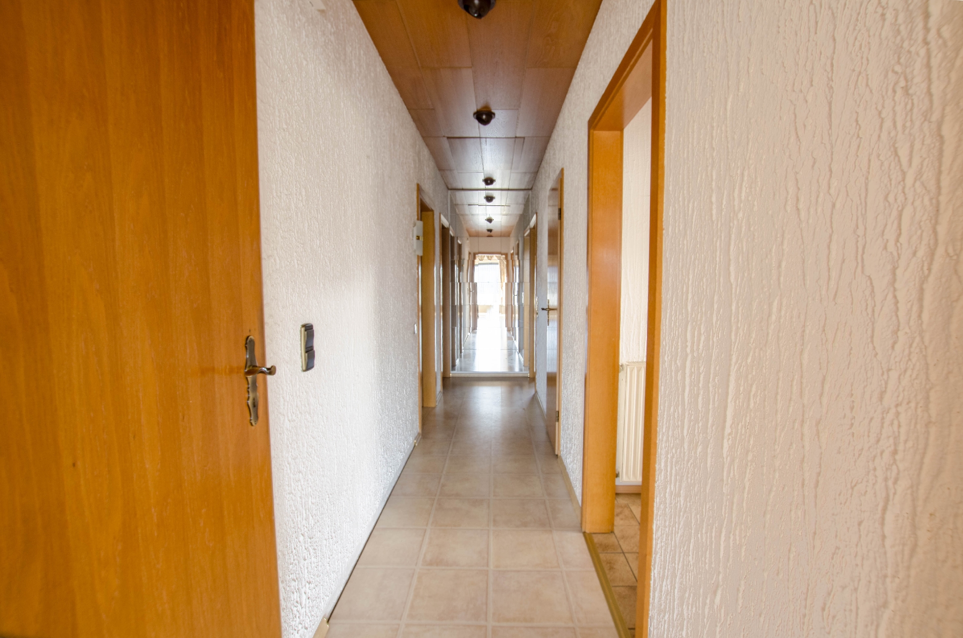 • Willkommen in Ihrem neuen Traumhaus! Dieses großzügige Einfamilienhaus, ein Fertighaus der Firma OKAL, aus dem Jahr 1977 bietet Ihnen auf 200 m² Wohnfläche und einem weitläufigen Grundstück von 654 m² alles, was das Herz begehrt. Mit insgesamt 6 Zimmern ist ausreichend Platz für Familie und Freunde. Der einladende Vorraum führt Sie direkt in das lichtdurchflutete Wohnzimmer, das nahtlos zur Terrasse übergeht. Der große Garten ist ein wahres Paradies für Naturliebhaber und bietet unzählige Möglichkeiten zur Gestaltung Ihrer eigenen Oase. Ein praktischer Vollkeller bietet zusätzlichen Stauraum, während die Garage und der PKW-Stellplatz für ausreichend Parkmöglichkeiten sorgen. Das Grundstück ist umgeben von einer ruhigen Nachbarschaft. Dieses Haus wartet darauf, von Ihnen mit Leben gefüllt zu werden. Lassen Sie Ihrer Kreativität freien Lauf und gestalten Sie Ihr persönliches Zuhause!