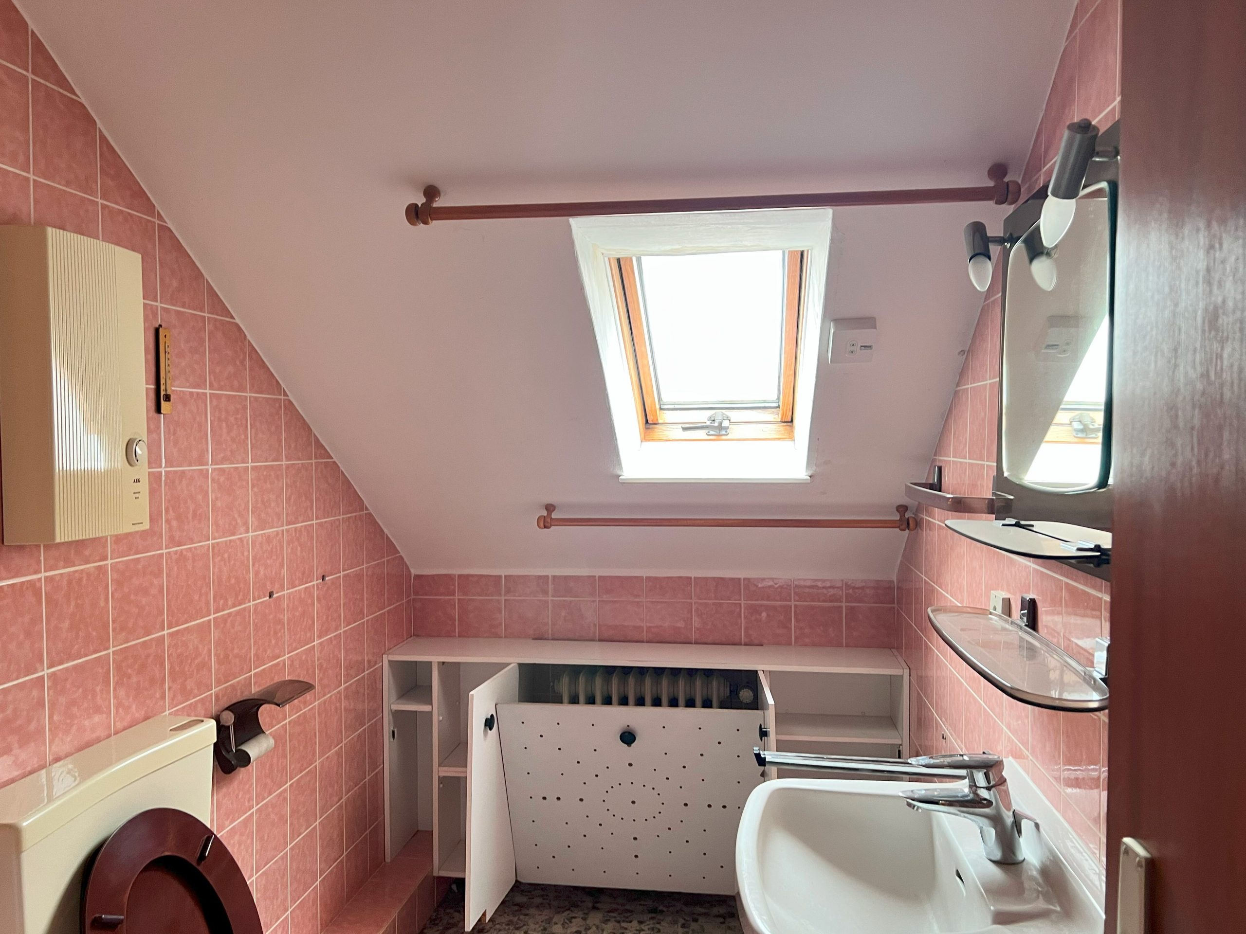 - Badausstattung: Badewanne, Fenster