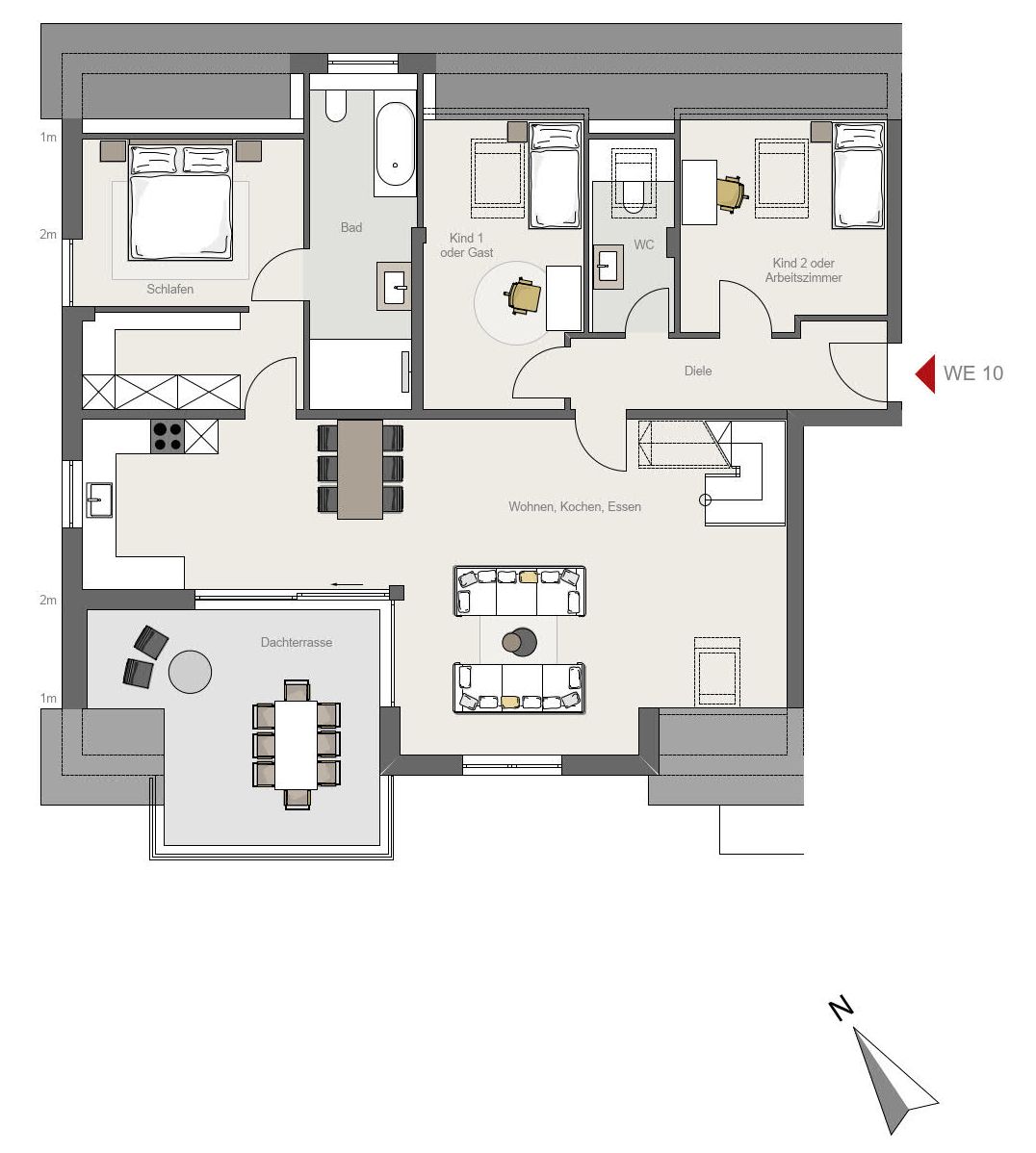 Diese wunderbare Wohnung befindet sich auf zwei Ebenen im Dachge-schoss und bietet Ihnen eine große, teilweise überdachte Dachterrasse in Süd-West-Lage. Von hier können Sie die Sonnentage in vollen Zügen ge-nießen.