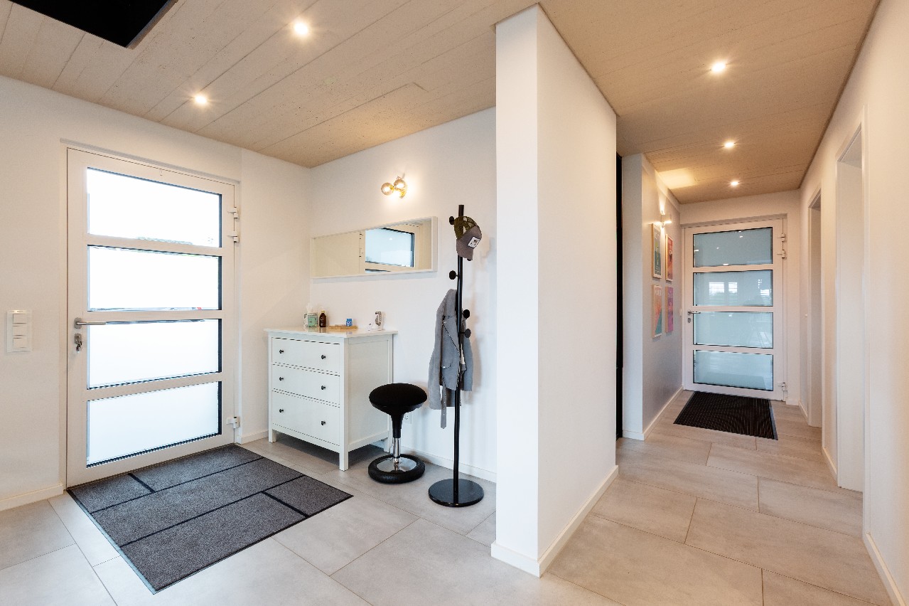 • Stellen Sie sich vor, Sie betreten ein Zuhause, das nicht nur durch seine moderne und ausgefallene Architektur besticht, sondern auch durch die Liebe zum Detail und die durchdachte Raumgestaltung. Das Baujahr 2020 verleiht dem Haus eine zeitlose Eleganz, während die besonderen Bauakzente wie die Sichtbetondecken und die offene Galerie mit der ganz besonderen Treppe eine einzigartige Atmosphäre schaffen, die sowohl modern als auch warm wirkt. Die 3-fach verglasten Fenster sorgen für Ruhe und Energieeffizienz, während die Solarthermie für Warmwasser sorgt und umweltfreundlich ist.