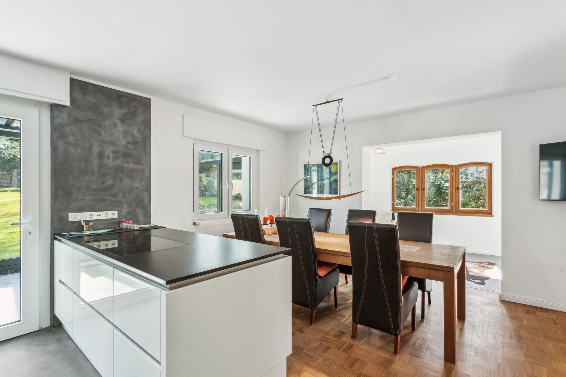 • Dieses liebevoll sanierte Einfamilienhaus aus dem Jahr 1958 vereint auf rund 156 m² Wohnfläche historischen Charme mit modernem Wohnkomfort. Nach seiner ursprünglichen Errichtung wurde das Haus 1973 um einen Anbau erweitert und in den vergangenen drei Jahren umfassend kernsaniert. Dabei entstand ein Zuhause, das mit hochwertiger Ausstattung, stilvollen Materialien und vielen liebevoll gestalteten Details begeistert.