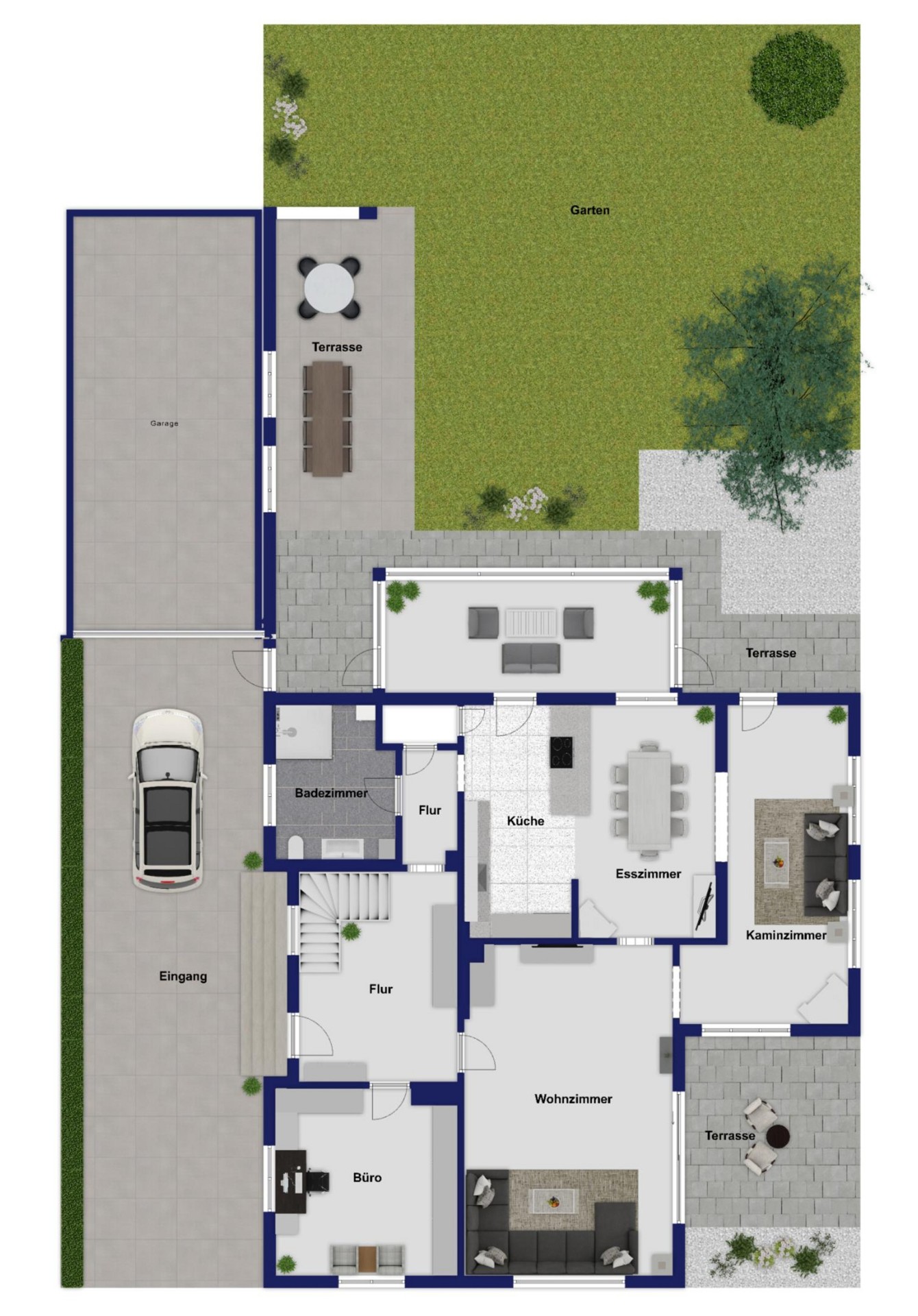 Das großzügige, nahezu 1.000 m² große Grundstück bietet vielfältige Gestaltungsmöglichkeiten – ob als Spielparadies für Kinder oder als idyllischer Rückzugsort mitten im Grünen.