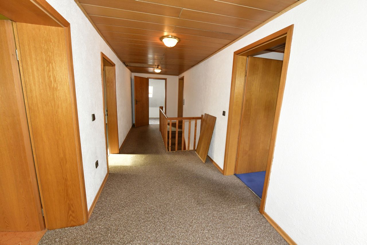 Obergeschoss: Ca. 106,57 m² Flächen, verteilt auf fünf Zimmer, die über eine Geschosstreppe als einläufige, geradläufige Holzkonstruktion mit Holzwangen, Tritt- und Setzstufen in Holz sowie Holzgeländer und Handlauf ausgeführt, erreicht werden.