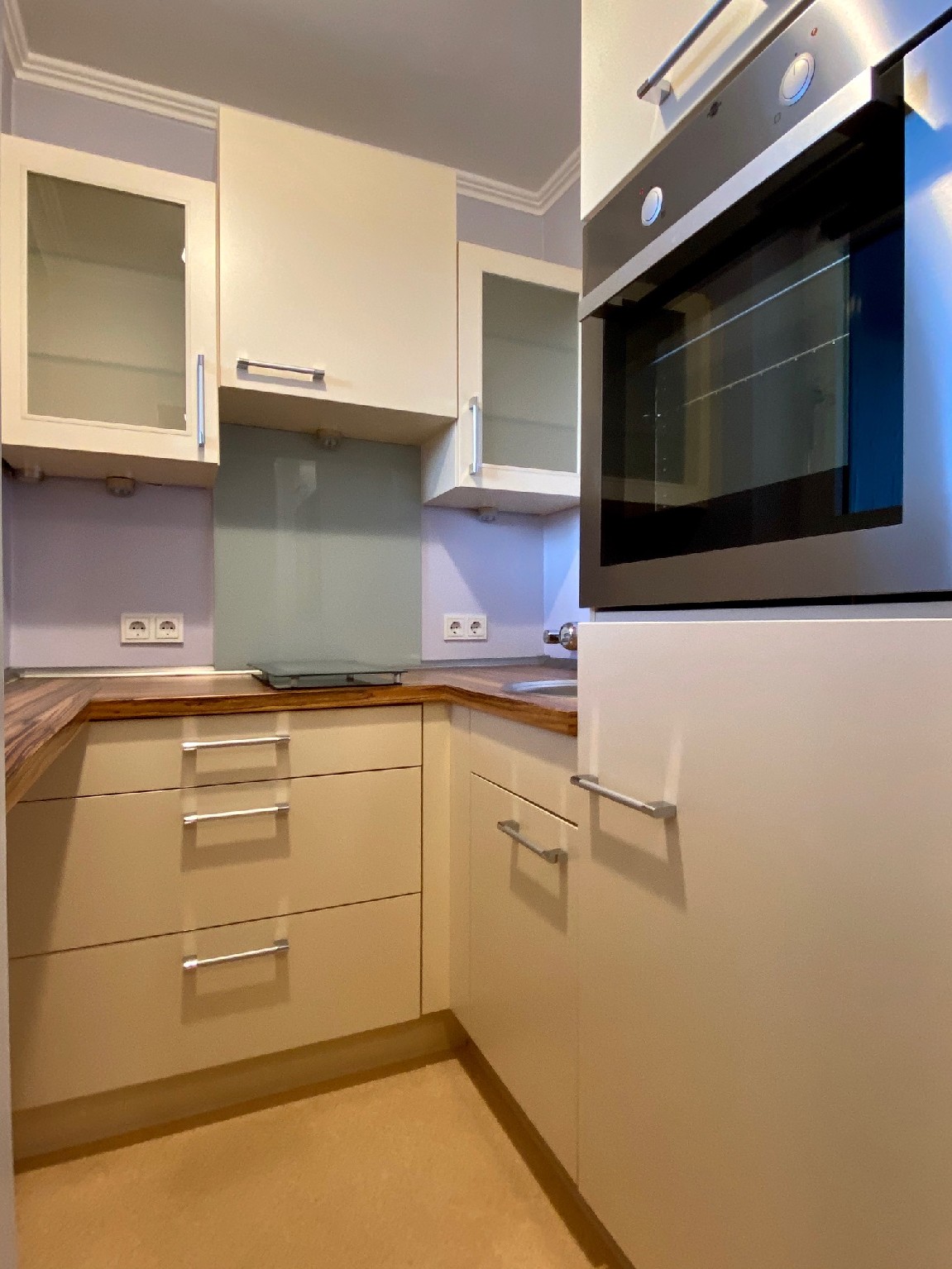 Die separate, moderne Küche präsentiert sich kompakt und durchdacht gestaltet. Sie ist mit Elektrogeräten ausgestattet und bereits im Kaufpreis enthalten .