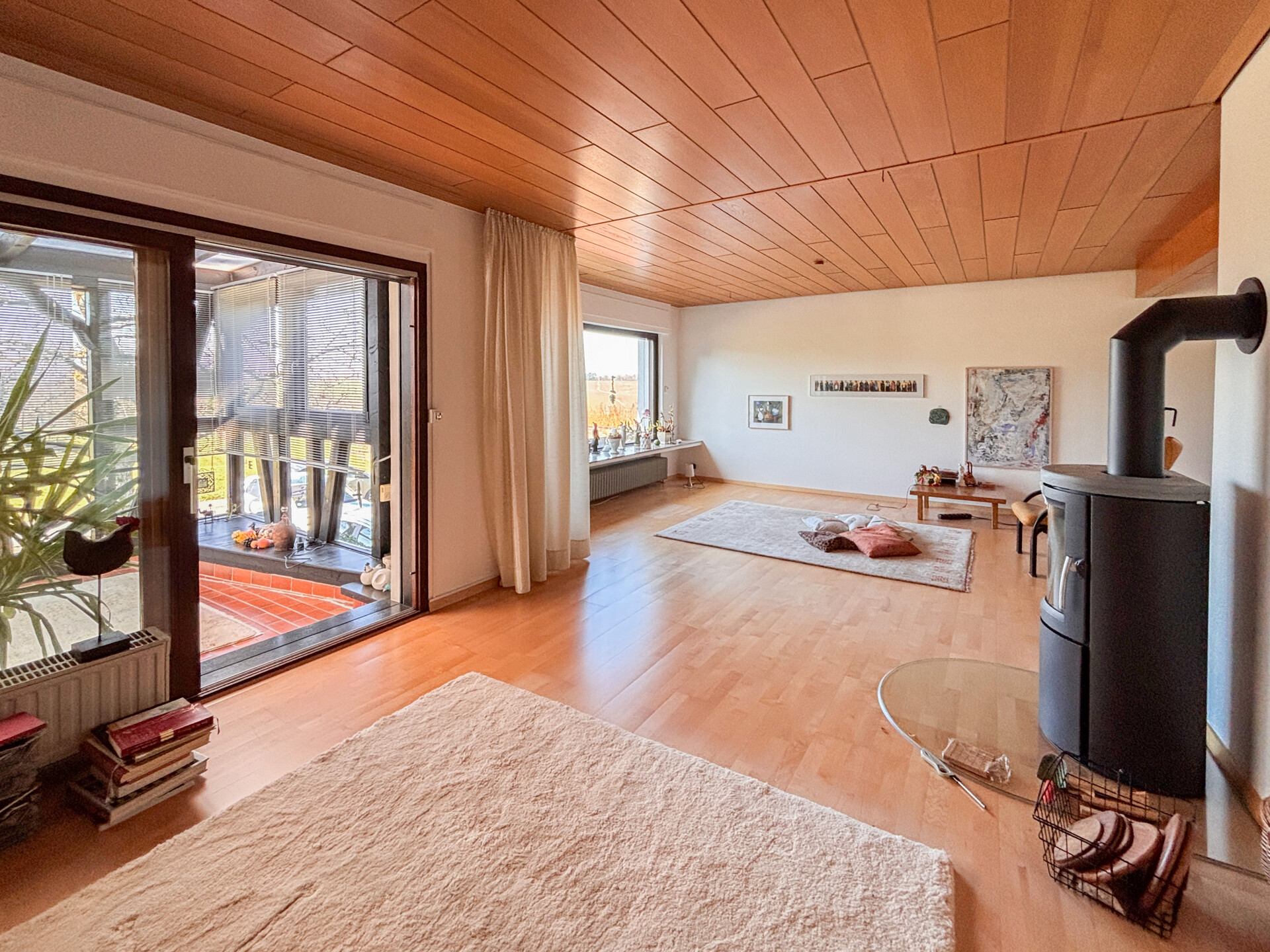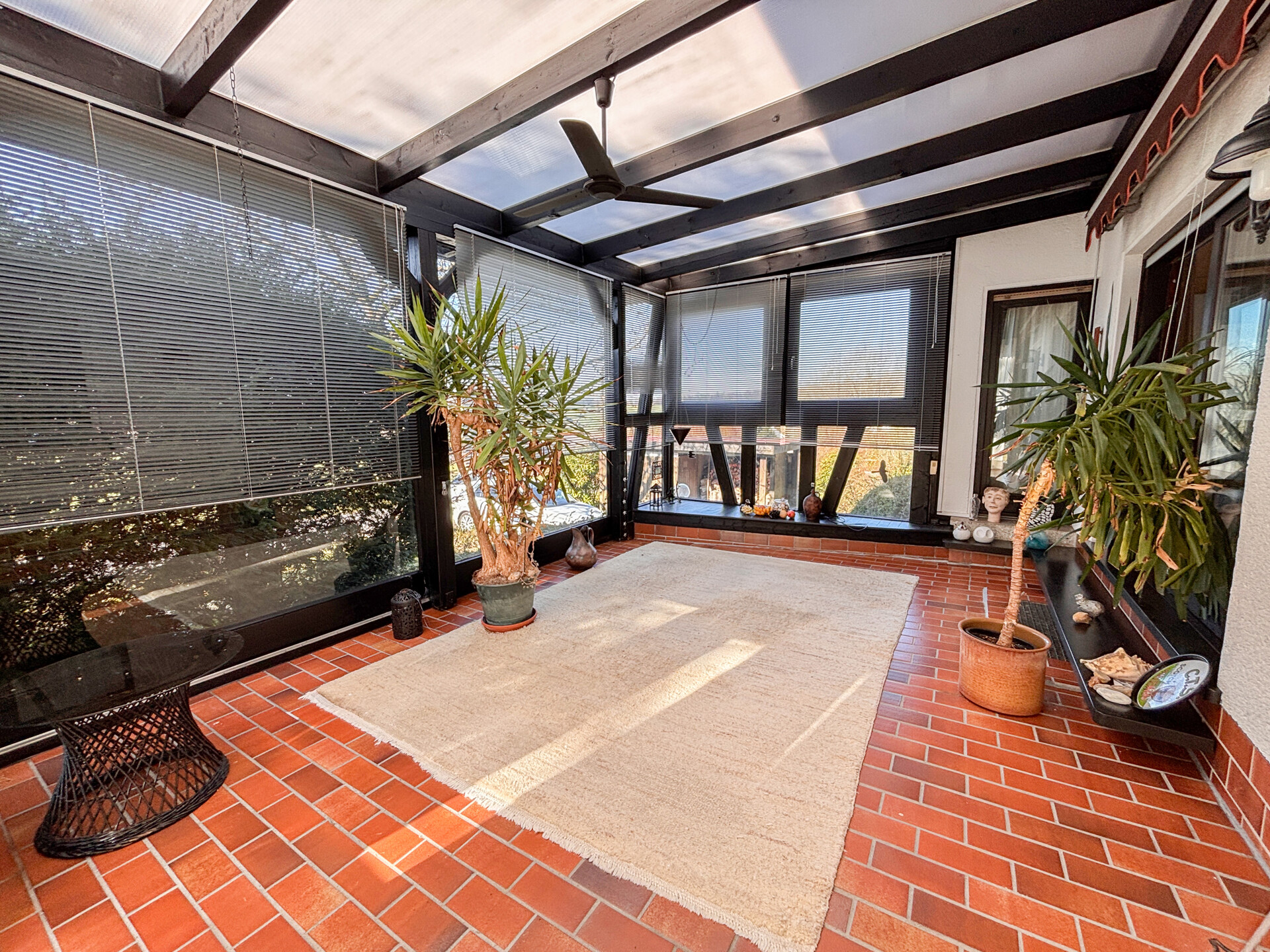 Dieses massiv erbaute und gepflegte Einfamilienhaus aus dem Jahr 1966 bietet auf zwei Etagen eine Wohnfläche von ca. 113 m². Das großzügige Grundstück mit etwa 3.964 m² teilt sich in 2 Flurstücke auf und eröffnet zahlreiche Möglichkeiten zur individuellen Gestaltung und lädt mit seiner herrlichen Aussicht zum Verweilen ein. Im Erdgeschoss erwartet Sie ein durchdachter Grundriss mit einem Gäste-WC, einem Badezimmer sowie einem Arbeitszimmer, individuell als Gästezimmer nutzbar. Das Herzstück dieser Etage bildet der großzügige Wohn- und Essbereich mit Kaminofen. Von hier aus gelangen Sie direkt in den Wintergarten. Ergänzt wird das Erdgeschoss durch eine Küche. Das Dachgeschoss bietet drei Schlafzimmer, ein separates WC und ein Tageslichtbad. Die beiden Schlafzimmer verfügen jeweils über einen eigenen Balkon mit Blick in den Garten, wobei eines der Zimmer zusätzlich mit einer praktischen Ankleide ausgestattet ist. Das Haus ist unterkellert und bietet damit zusätzlichen Stauraum. Hier befinden sich eine gemütliche Kellerbar, eine Waschküche, ein Vorratsraum sowie der Heizungsraum. Zudem besteht ein direkter Zugang zur Garage.