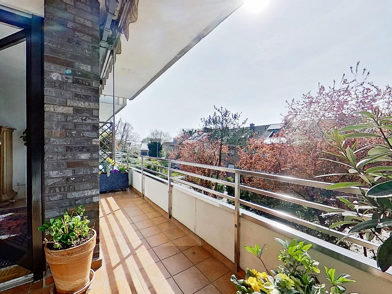 sonnige und große Terrasse mit Markise und weiterer großer Balkon zur Gartenseite