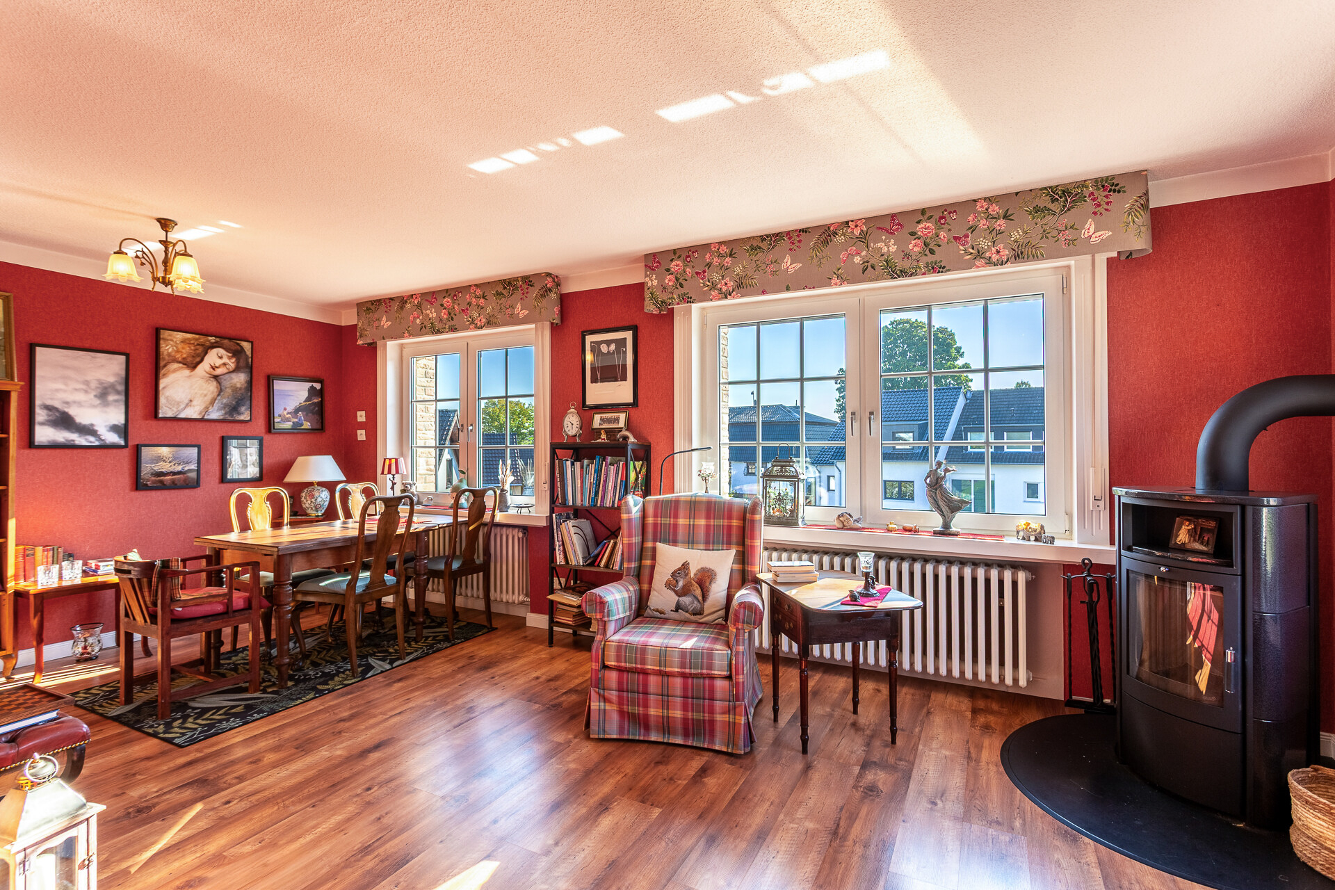 Zu den weiteren Ausstattungsmerkmalen gehören Fenster mit Doppelverglasung (teilweise aus 1993 und 2000), außerdem teilweise erneuerte Rollladenkästen im Erdgeschoss aus dem Jahr 2022. Das Haus wurde in 2007 von außen bis zur Bodenplatte hochwertig und komplett isoliert. Die Heizungsanlage wird durch einen Vaillant Wertstoffbrenner aus 2006 betrieben. Im Dachgeschoss ist eine Fußbodenheizung verbaut, wobei das Erd- und Untergeschoss über Radiatoren verfügt. Das Heißwasser läuft über Durchlauferhitzer. Beide Hauseingangstüren sowie der Großteil der Fenster verfügen über eine Einbruchsicherung.