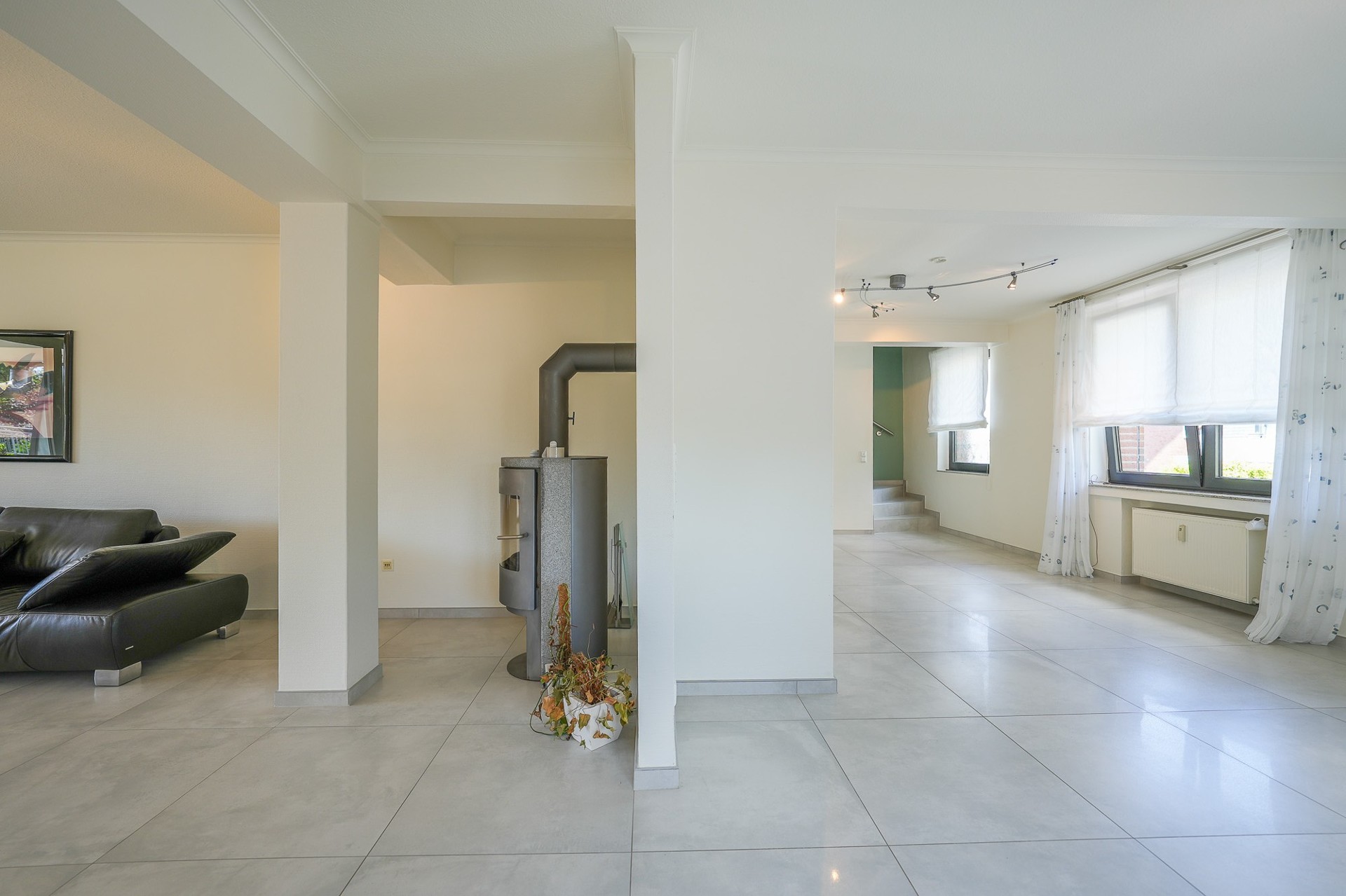 Im 1. Obergeschoss entfaltet sich Ihr privater Rückzugsort. Großzügig, lichtdurchflutet, offen gestaltet: Der Wohn- und Essbereich mit Kamin wird zum Mittelpunkt des Alltags. Hier wird gearbeitet, gekocht, gelacht – und gelebt.