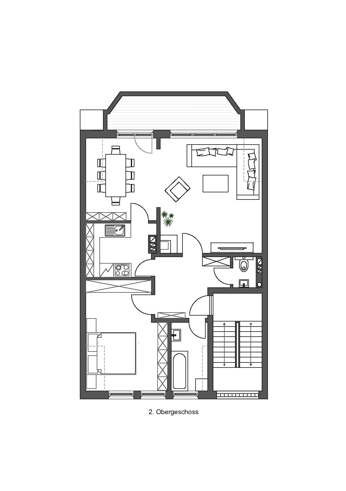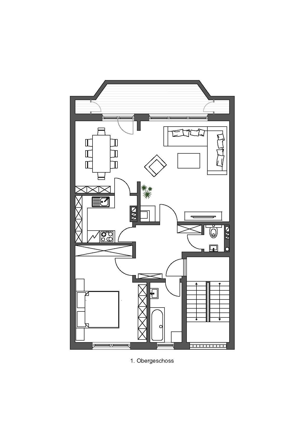 1. Obergeschoss (ca. 72 m²): gut geschnittene 2-Zimmer-Wohnung.