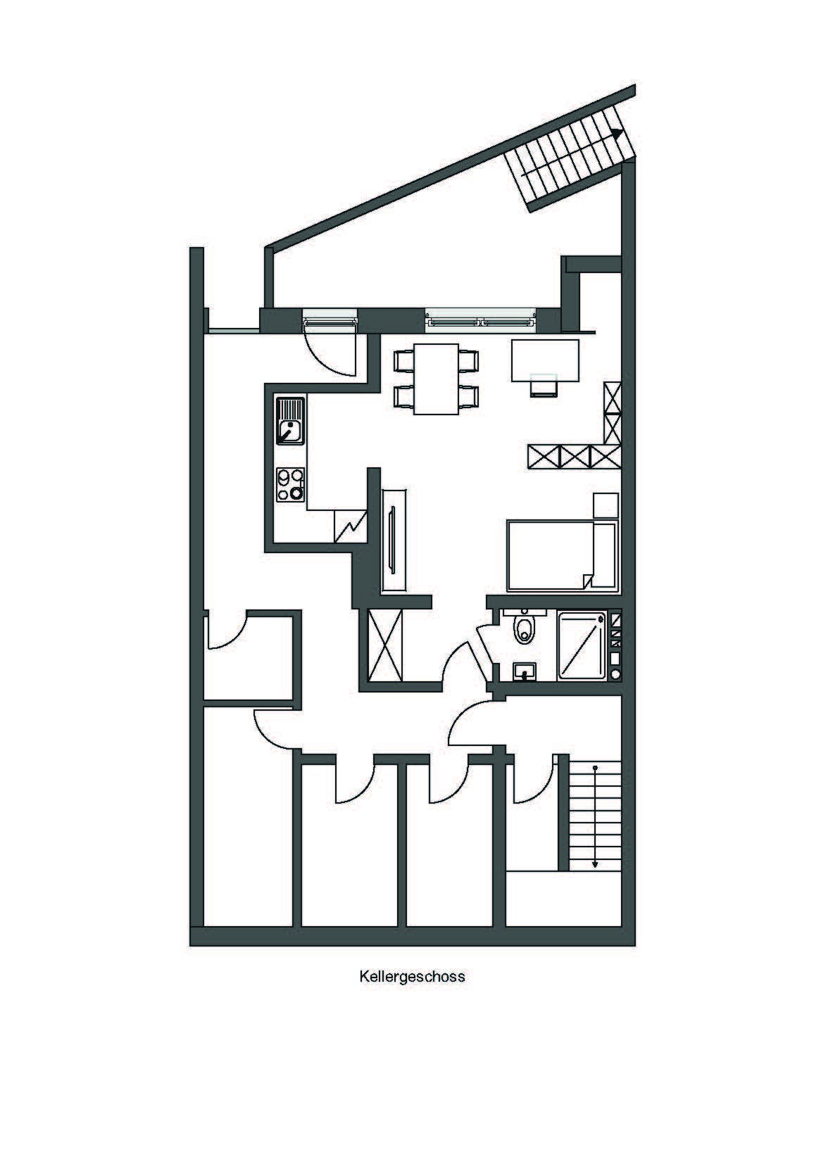 Souterrain (ca. 34 m²): kompakte 1-Zimmer-Lösung zur individuellen Nutzung.
