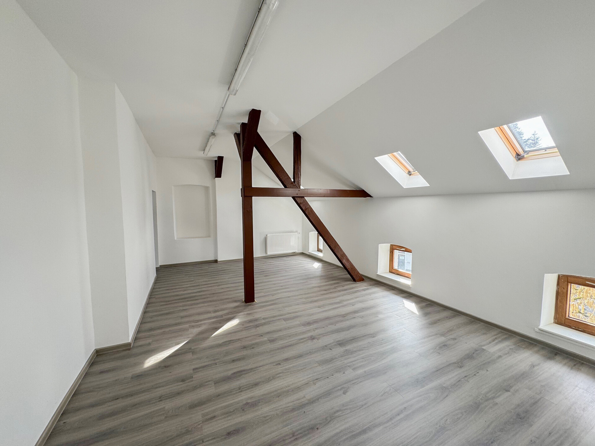 Das Obergeschoss ergänzt das Raumangebot um weitere fünf helle Räume um ca. 101,47 m² auf 205,76m² . Zusätzliches Potenzial bietet das Dachgeschoss (ca. 118,06 m²) Abstellfläche.