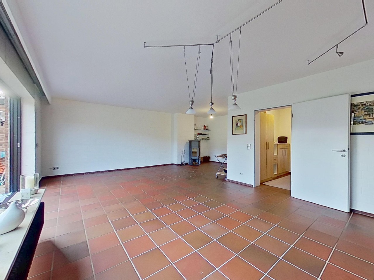 großer Wohn-Essbereich (ca. 43m²) mit Kaminofen