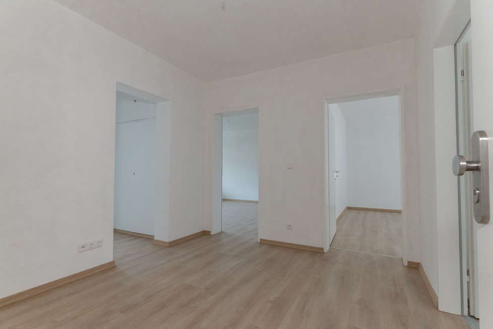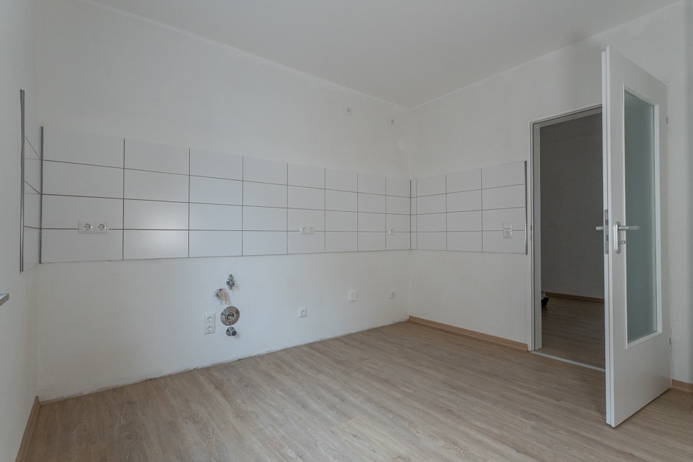 Die Wohnräume und die Diele sind mit Laminatböden ausgestattet, während in der Küche ein pflegeleichter Klickvinylboden verlegt wurde. Die Wände sind tapezierfähig vorbereitet. Zum Wohnangebot gehört selbstverständlich ein gemeinschaftlicher Trockenboden und auch ein eigener Kellerraum. -