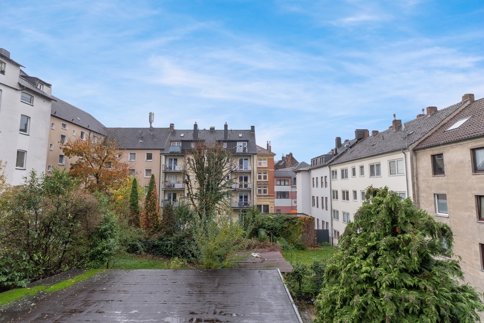 Die Wohnung liegt im Hagener Stadtteil Wehringhausen, nur wenige Gehminuten von der Innenstadt und dem Hauptbahnhof entfernt. Einkaufsmöglichkeiten, Supermärkte und Cafés befinden sich in unmittelbarer Nähe. Auch das Theater Hagen und weitere kulturelle Angebote sind gut erreichbar.
