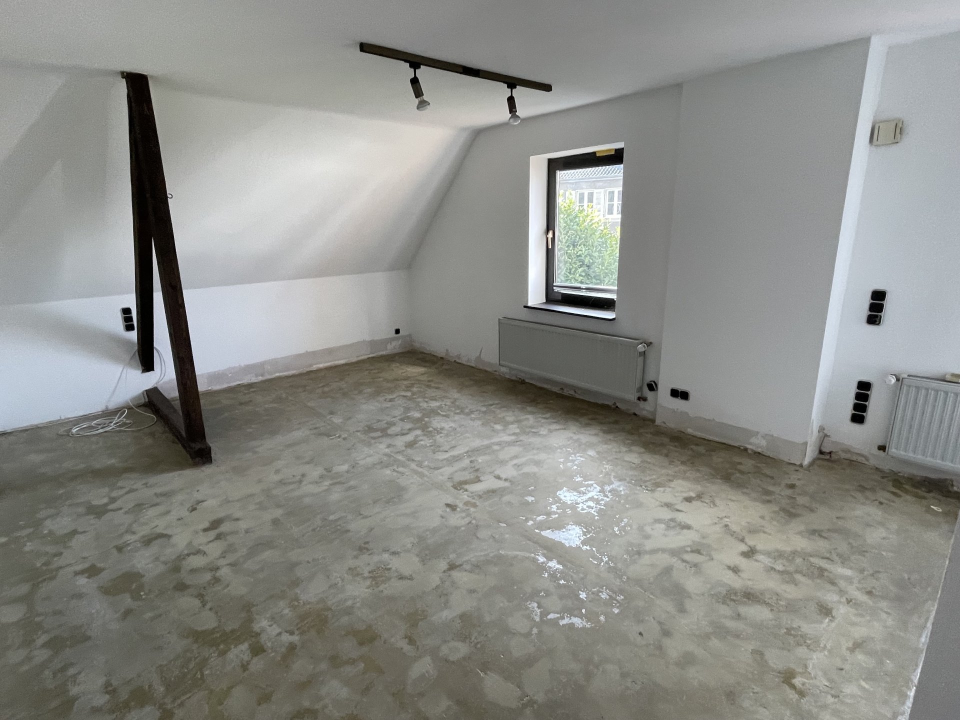 Über eine Treppe (Holz-Stahlkonstruktion) gelangen Sie ins Dachgeschoss. Auf der linken Seite der sich dort befindlichen Diele liegt das große Hauptschlafzimmer mit einem großzügigen Bad en Suite. Vom Schlafzimmer aus gelangen Sie auf einen kleinen Balkon in Ostausrichtung. Auf der anderen Seite der Diele befinden sich Räumlichkeiten, die früher als Einliegerwohnung genutzt wurden. Diese bestehen aus einem kleinen Flur, einem kleinen Duschbad und einem größeren Zimmer, das über Anschlüsse für eine kleine Küchenzeile verfügt. Man muss bedenken, dass diese Räume nur über den normalen Hauszugang und das Treppenhaus erreichbar sind. Eine Fremdvermietung sehe ich daher als schwer. Vielleicht das erste eigenen Reich für ein heranwachsendes Kind oder wenn die Großeltern mal länger zu Besuch kommen.