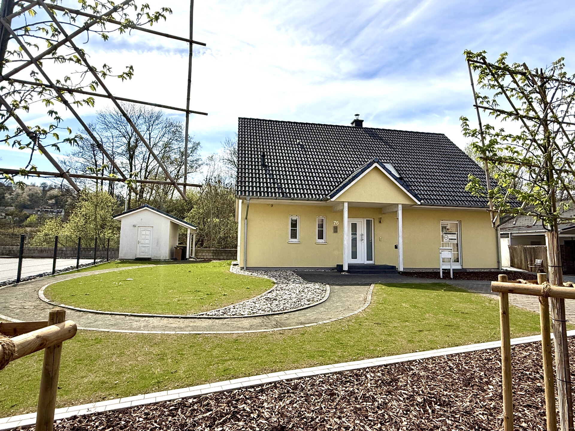 Die Immobilie befindet sich in zentraler Lage von Betzdorf. Zum Haus gehören außerdem vier Stellplätze; zudem sind bereits Carport-Fundamente vorhanden. Der Garten wurde kürzlich neu gestaltet und überzeugt durch großzügige Flächen – ideal für Familien, Freizeit und Erholung. Eine große Terrasse lädt zum Verweilen im Freien ein, während ein massives Gartenhaus zusätzlichen Stauraum oder Nutzungsmöglichkeiten bietet. Durch die innenstadtnahe Position profitieren Sie von kurzen Wegen zu zahlreichen Einrichtungen des täglichen Bedarfs.