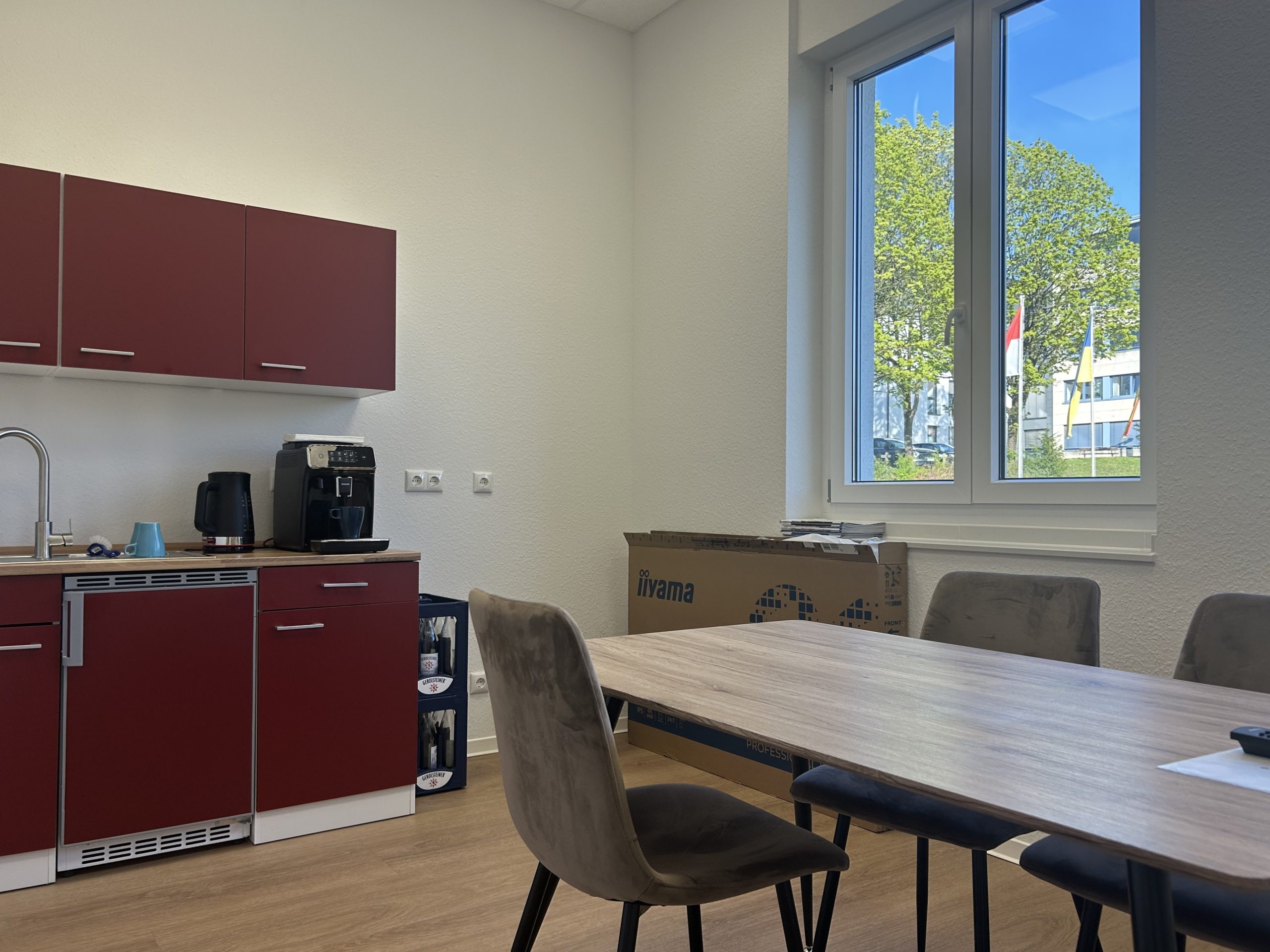 Im 1. Obergeschoss mit Blick auf die Gemeindeverwaltung und ins Grüne.